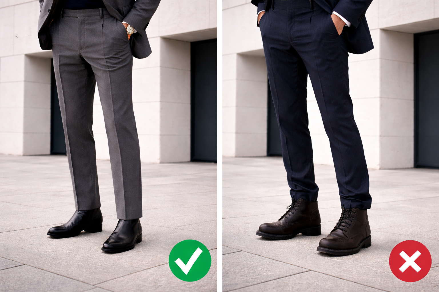 This is why so many men look “almost right” but never truly composed. The tailoring fights the footwear instead of working with it. The result is visual friction a break in harmony that the eye immediately senses, even if it cannot explain it.
