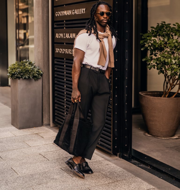 A white tee isn’t casual by default. Pair it with the right trousers and accessories, and it becomes a power piece in disguise.