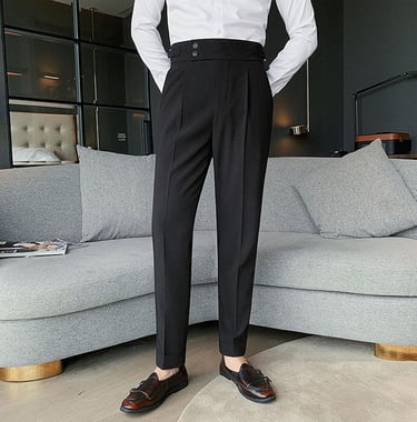 Low-rise trousers.