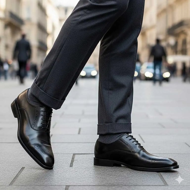 Weak shoes under strong tailoring read as unserious.